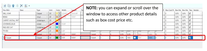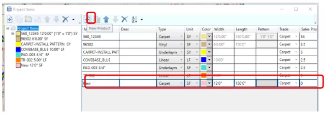 • Click the New Product button and see the new line tem appear on the Product List: Here you will fill out the applicable fields necessary for your estimation and worksheet generation. This includes but is not limited to the product SKU, type, and unit, as shown below.