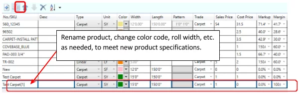 • To Duplicate Products in the product list, click on the Duplicate button shown below: By doing this, you will speed up data entry for every product of a certain trade.