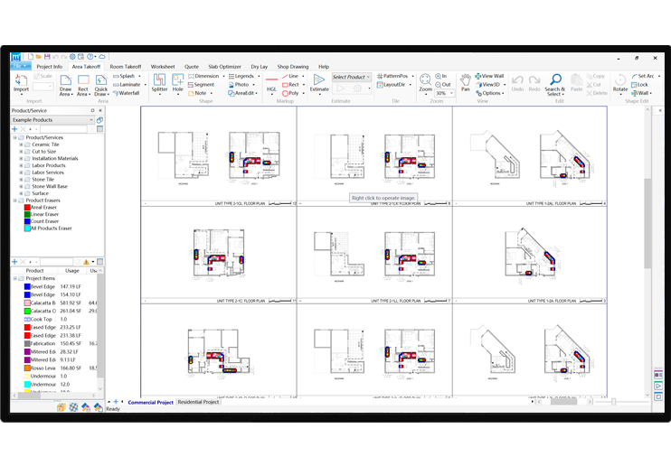 • Empower your estimating and sales team to take off and bid on commercial and multi-family stone/countertop and tile projects.