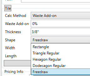 One thing to be careful with when using tile products is the grout width. If you are using a tiled product that doesn’t need grout, make sure to set your grout width to 0, or your quantities will be off.