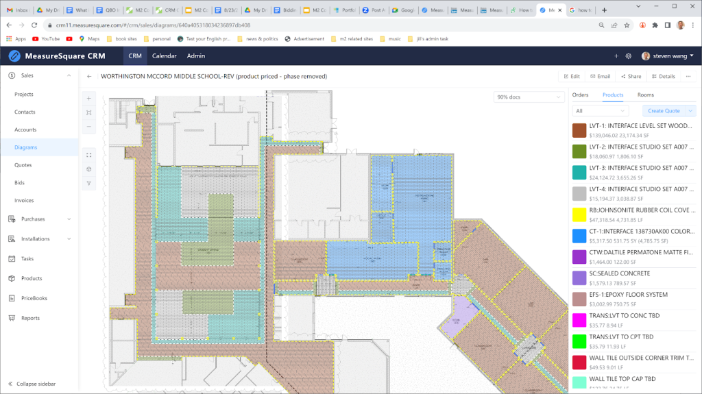 Unlike general CRM systems, MeasureSquare CRM is designed specifically for the flooring industry. It allows you to leverage your takeoff estimating data and diagrams to create professional bids, sales orders, purchase orders, work orders, and more. You can also collaborate with your team on estimating projects, manage your vendors and price books online, track your project status and jobsite completion, and sync your data with accounting software like QuickBooks Online and Xero.